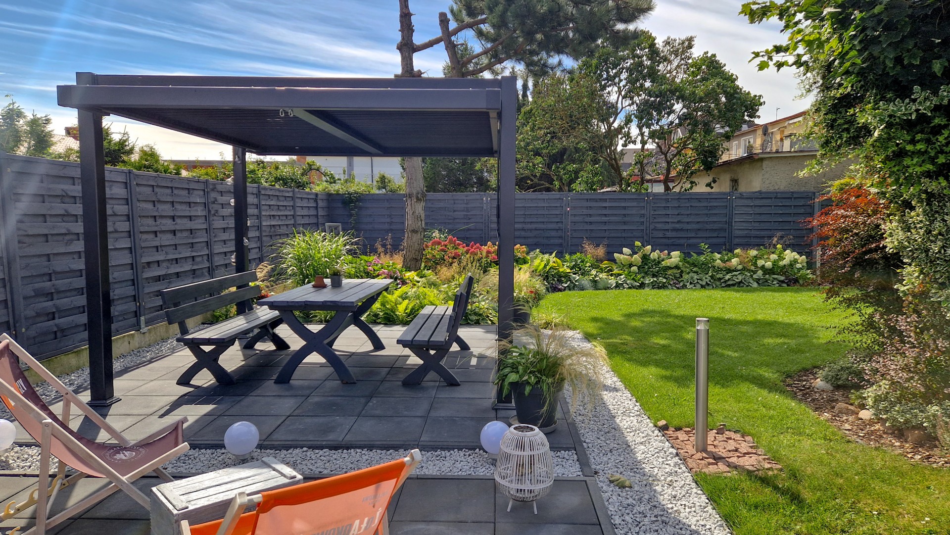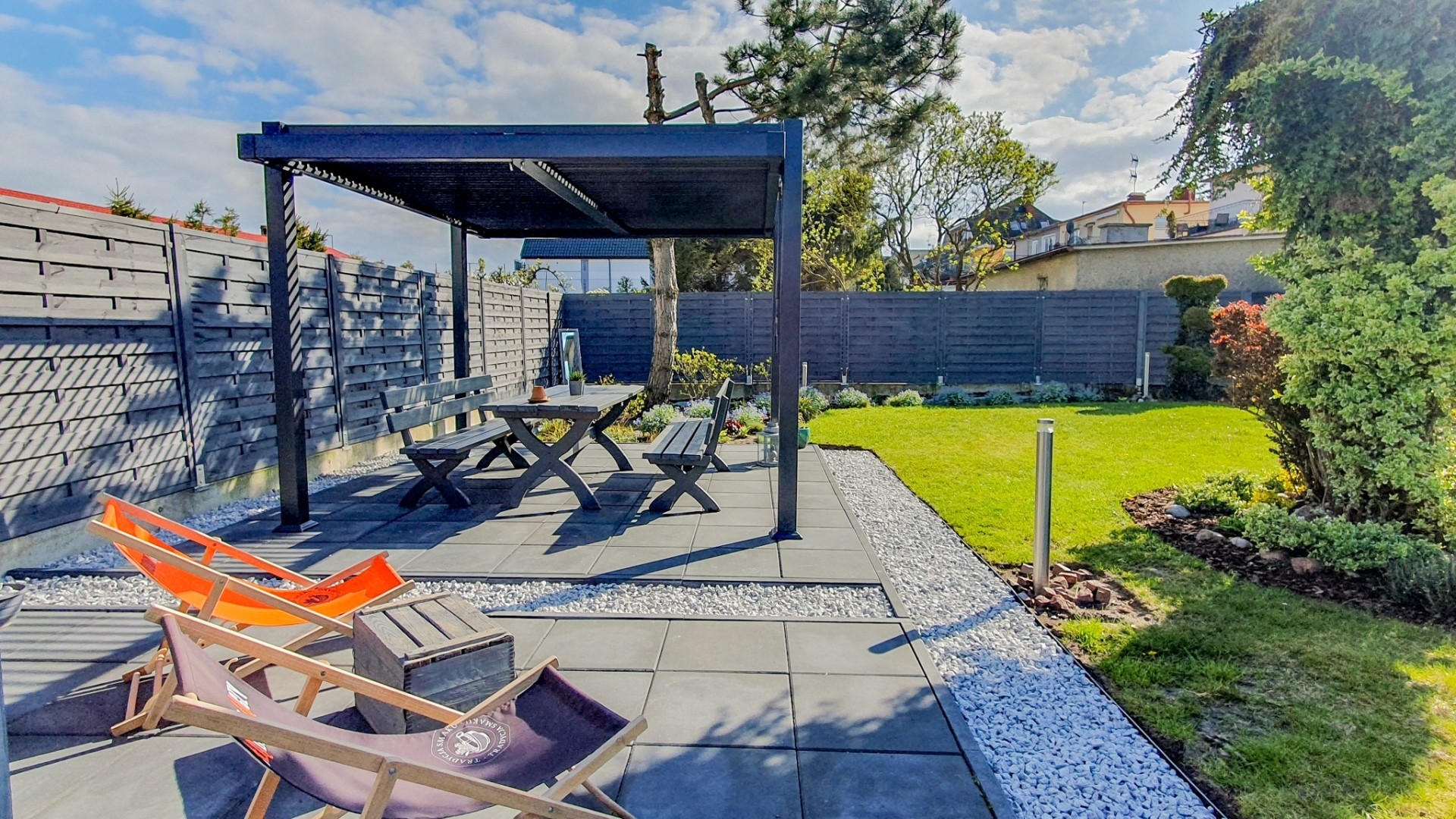 Kameralny ogród zapewnia poczucie prywatności oraz jest doskonałym miejscem na opalanie lub poczytanie książki przy kawie.